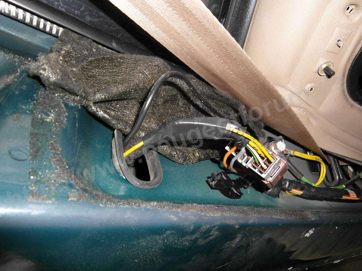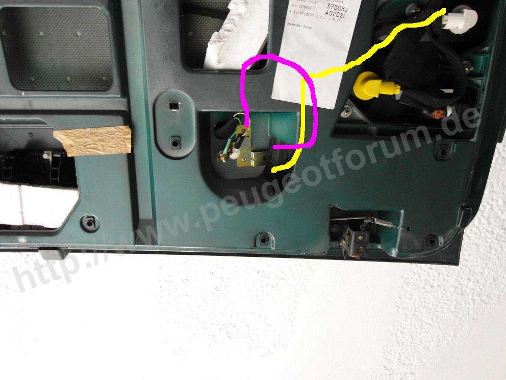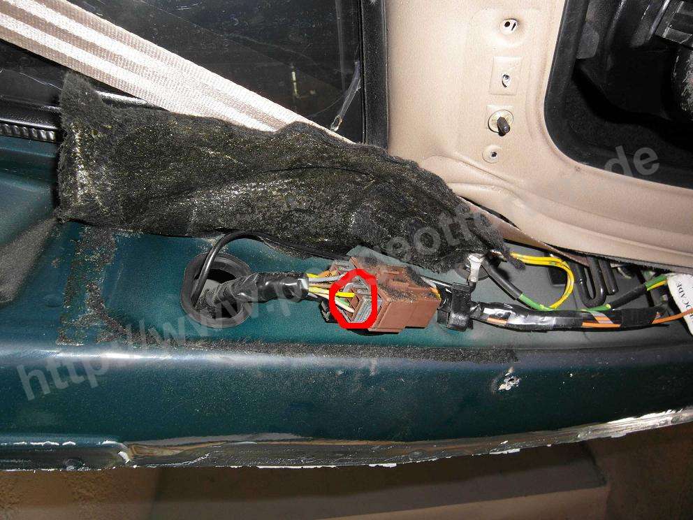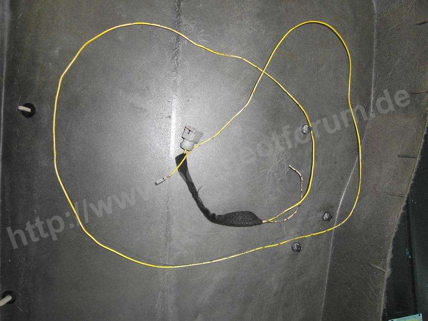 Ist das Kabel auch durch dir Gummit?lle gef?delt, kommt es jetzt in die Karosse rein und wird am Serienkabelbaum entlang zum vorher freigelegten Stecker gef?hrt.