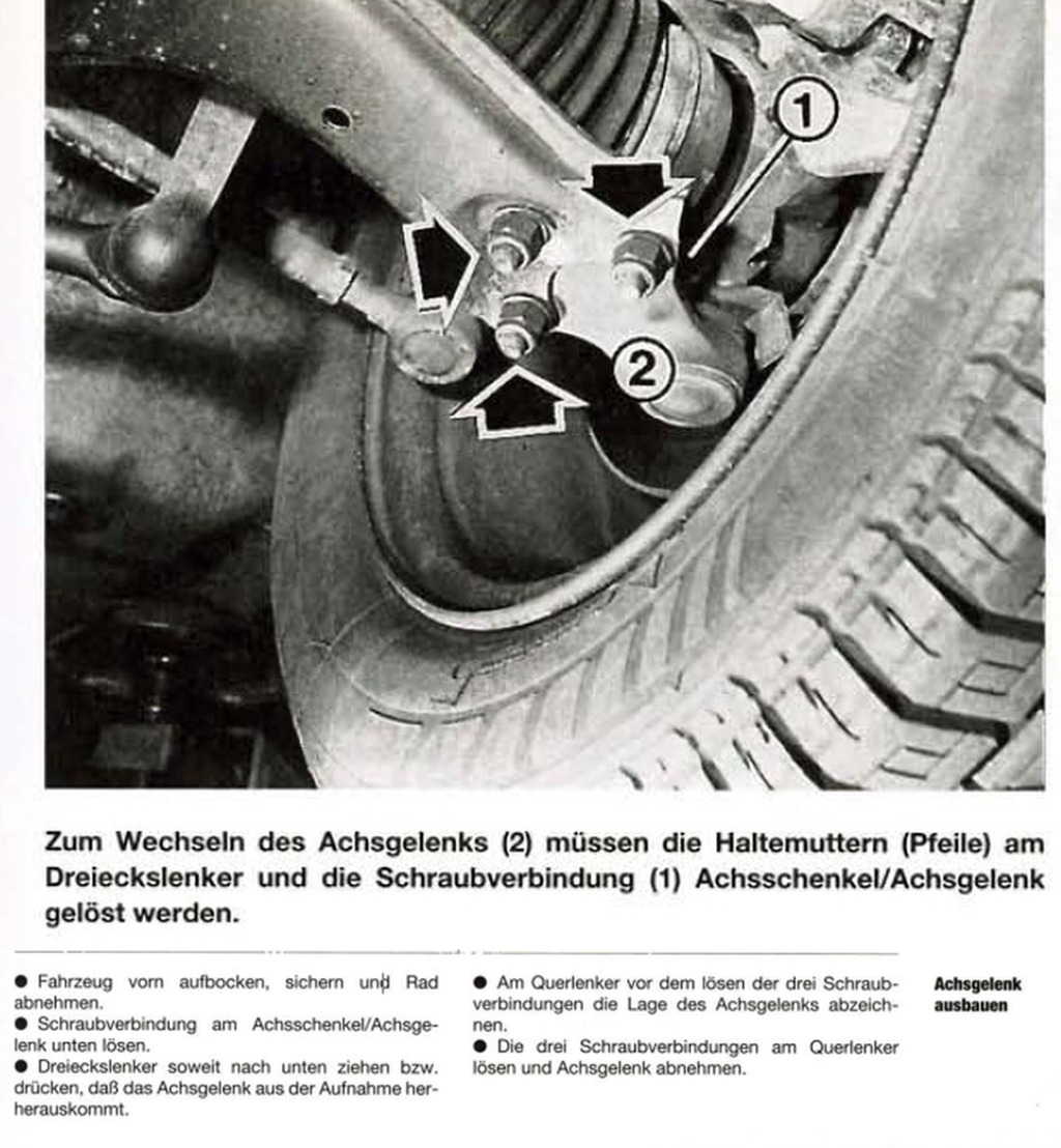 Einfach die 3 schrauben am querlenker lösen und die eine überm traggelenk.