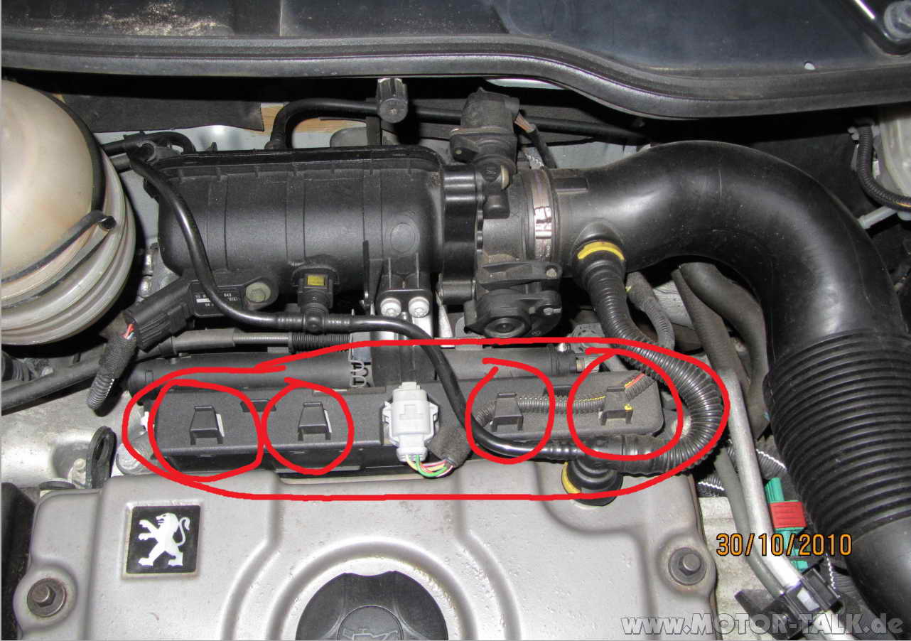 Das Ding was da Rot ist, ist die Zündspulenleiste....die muss ab....büdde sachte, es kann sein das die noch irgendwo fixiert ist(das weiß ich aber nicht genau).