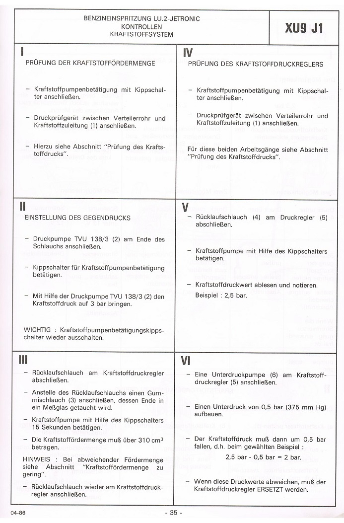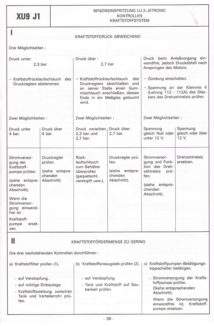 Benzindruck und fördermenge XU9J1 DFZ 102ps