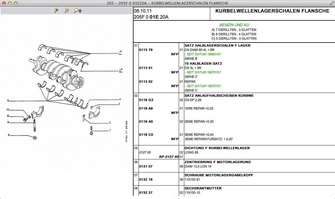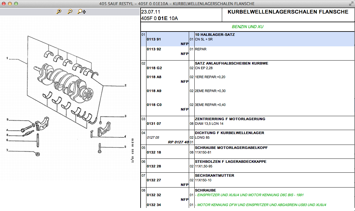 Ich suche für meinen 405 XU9J4 D6C Baujahr 89 neue Hauptlager für die Kurbelwelle