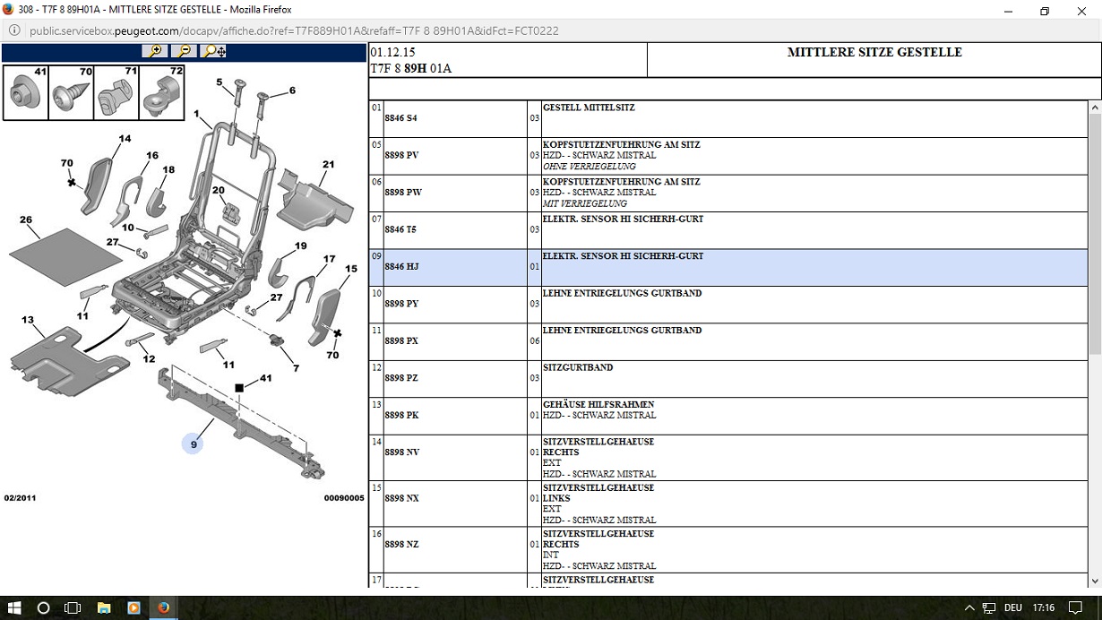 unser 308 hat ja auch so einen modernen schietkram, hatte auch schon mal überlegt wie der sitz hinten es weiß ob dort jemand hockt oder nicht. zu einem ergebnis bin ich noch nicht gekommen, in der servicebox ist ein teil als elektischer sensor abgebildet, hier die nr. 9: