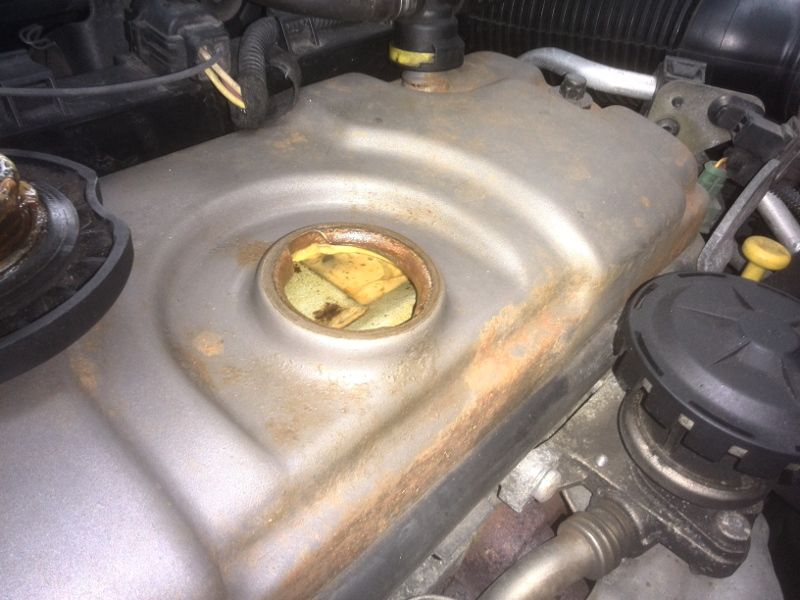 Habe auch einmal in den Öleinfülldeckel gesehen und dort etwas Wasser/Ölschlamm entdeckt, was auf den folgenden Bildern zu erkennen ist.
