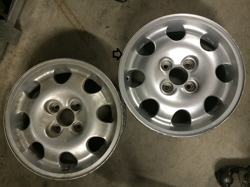 Am liebsten würde ich beide Felgen gegen 2 Stk Speedline 299 (6J15 ET18 vom 205 GTI) tauschen.