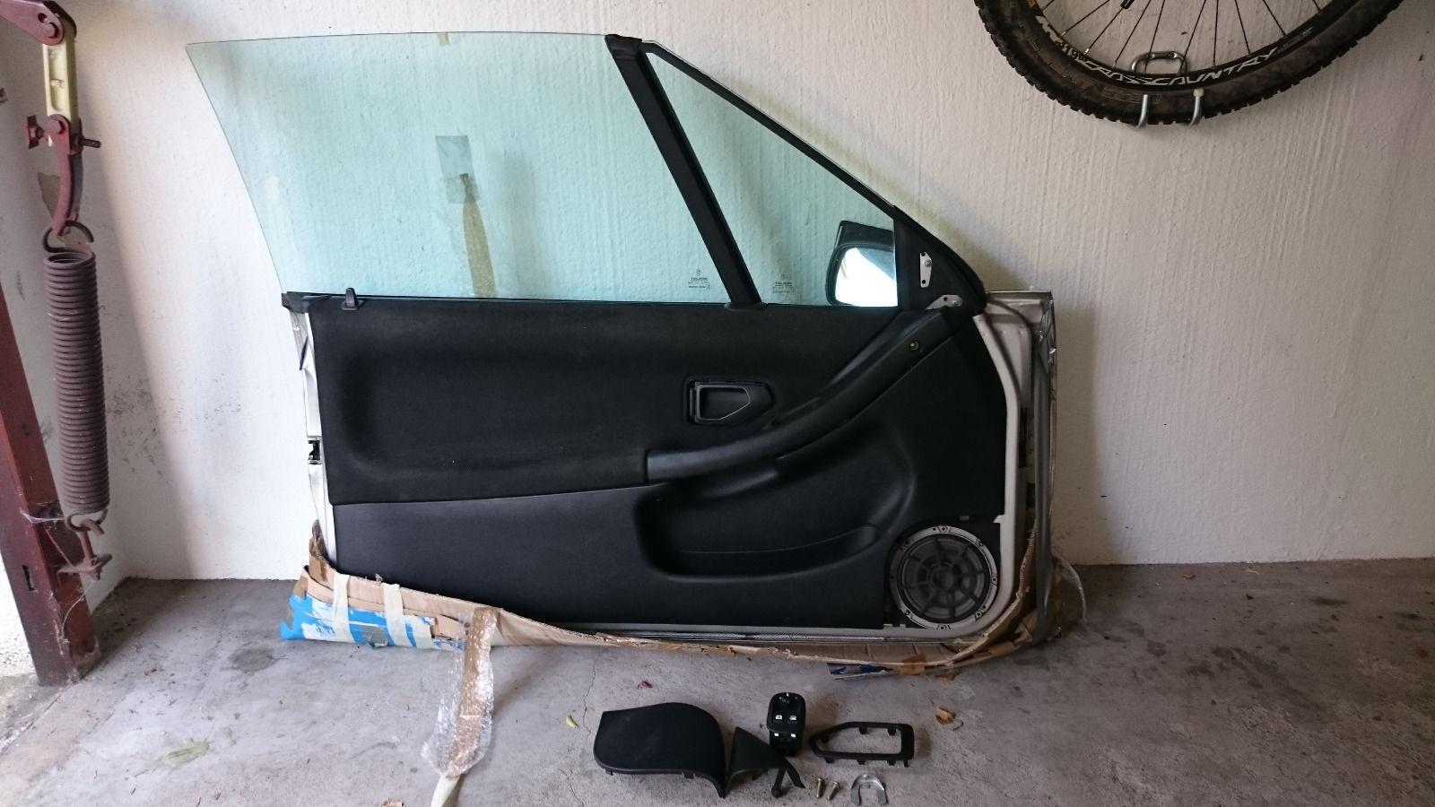 Sie ist komplett mit Scheiben, Innenverkleidung, funktionierendem Fensterheber, funktionierendem elektrischen Spiegel, Lautsprecher, Kabelbaum, Bedieneinheit für Fensterheber, allen Abdeckungen.