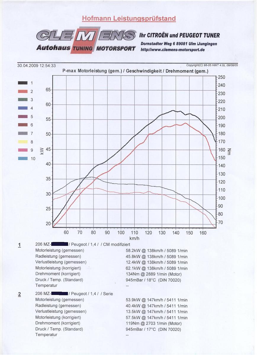 - Kennfeldanpassung durch die Firma Clemens Motorsport in Ulm (Leistungsdiagramm in der Bildergalerie)