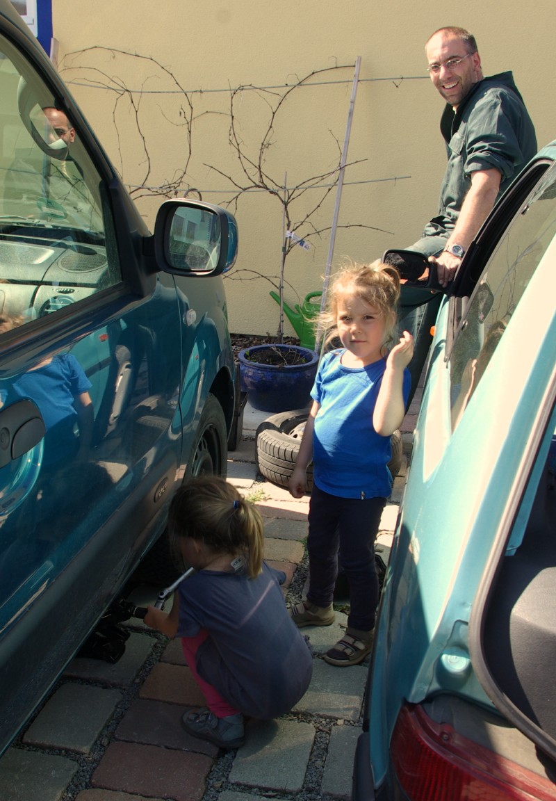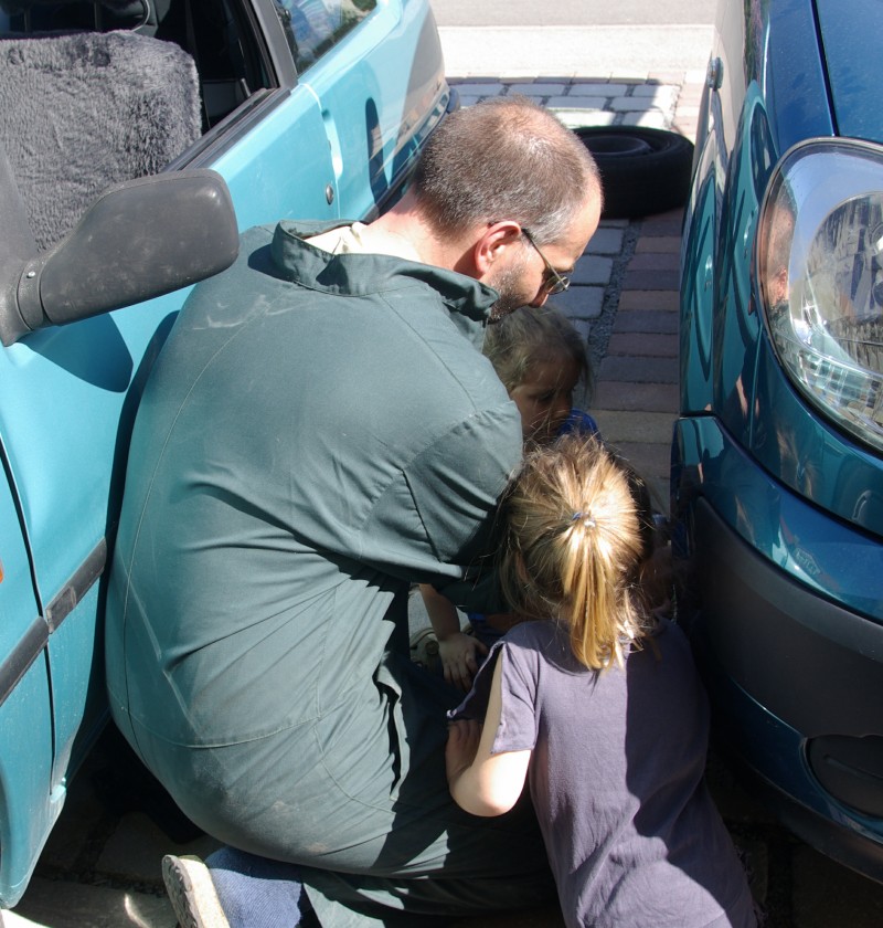 - Papa schraubt am Auto rum