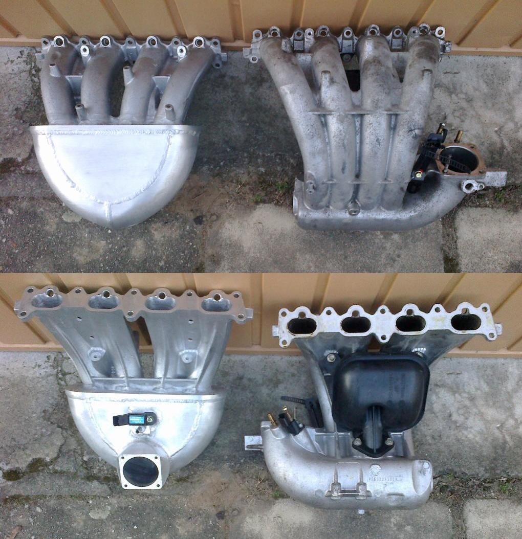 Endlich ist die Ansaugbrücke fertig. Links die Eigenentwicklung für meinen Turbo und rechts die Originale von Peugeot, die bisher verbaut war. Diese steht nun im Übrigen auch zum Verkauf, sobald sie gereinigt wurde