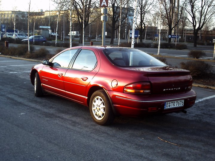 Nach dem mein 106 nun abgemeldet ist und auf seinen neuen Besitzer wartet, wollte ich ja eigentlich einen 406 S2 Limo kaufen...hab aber leider kein gutes Angebot gefunden...also suchte ich weiter nach einer Limousine die man nicht so oft sieht, die gut aussieht, gut motorisiert und ausgestattet ist...und dann habe ich mich in den hier verguckt...Ein Chrysler Stratus, hatte die Wahl zwischen dem V6 2,5 163 PS Automatik und dem 4 Zylinder 2.0 133 PS Schaltung, 1450 Kg, mit 2 Airbags, 4 x E-Fenster, E-Außenspiegel, E-Sitze, Klima, ABS, Mittelarmlehne, Tempomat, Funk ZV, Servo, Wegfahrsperre, Checkheftgepflegt, Nebelscheinwerfer, Alufelgen, Weinrot Metallic, 146.000 Km, 6/1998er...Das Auto fährt sich super, schluckt bei besonnener Fahrweise nicht viel und ist sehr komfortabel...man fährt wie in seinem eigenen Wohnzimmer, heller Stoff, sehr laufruhig...da möchte man gar nicht mehr auf einen Kleinwagen umsteigen...Das Auto macht einen auch irgendwie zum "Rentner"...ich rase fast gar nicht mehr, seit dem ich ihn habe, sondern Cruise mit 50 daher...keine Ahnung warum...Versicherung alle 3 Monate 220 Euro, Steuern 147 Euro, Euro 2.