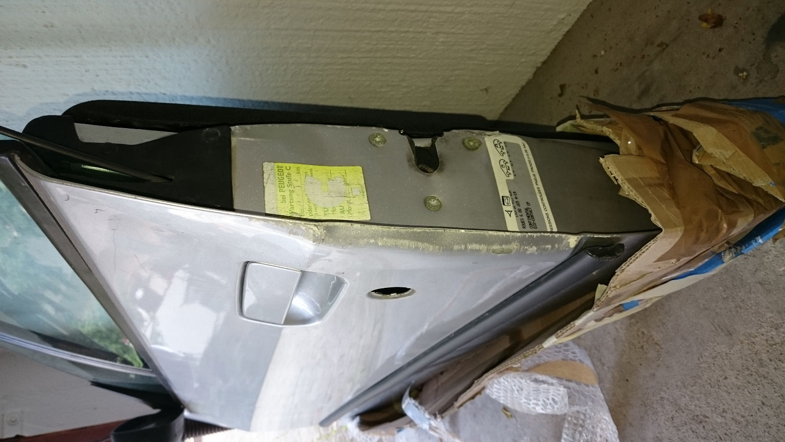 Die Tür hat einen Schaden an der hinteren Kante (hängen geblieben beim aus der Garage fahren ohne die Tür zu schießen. Kann ich nur von abraten.