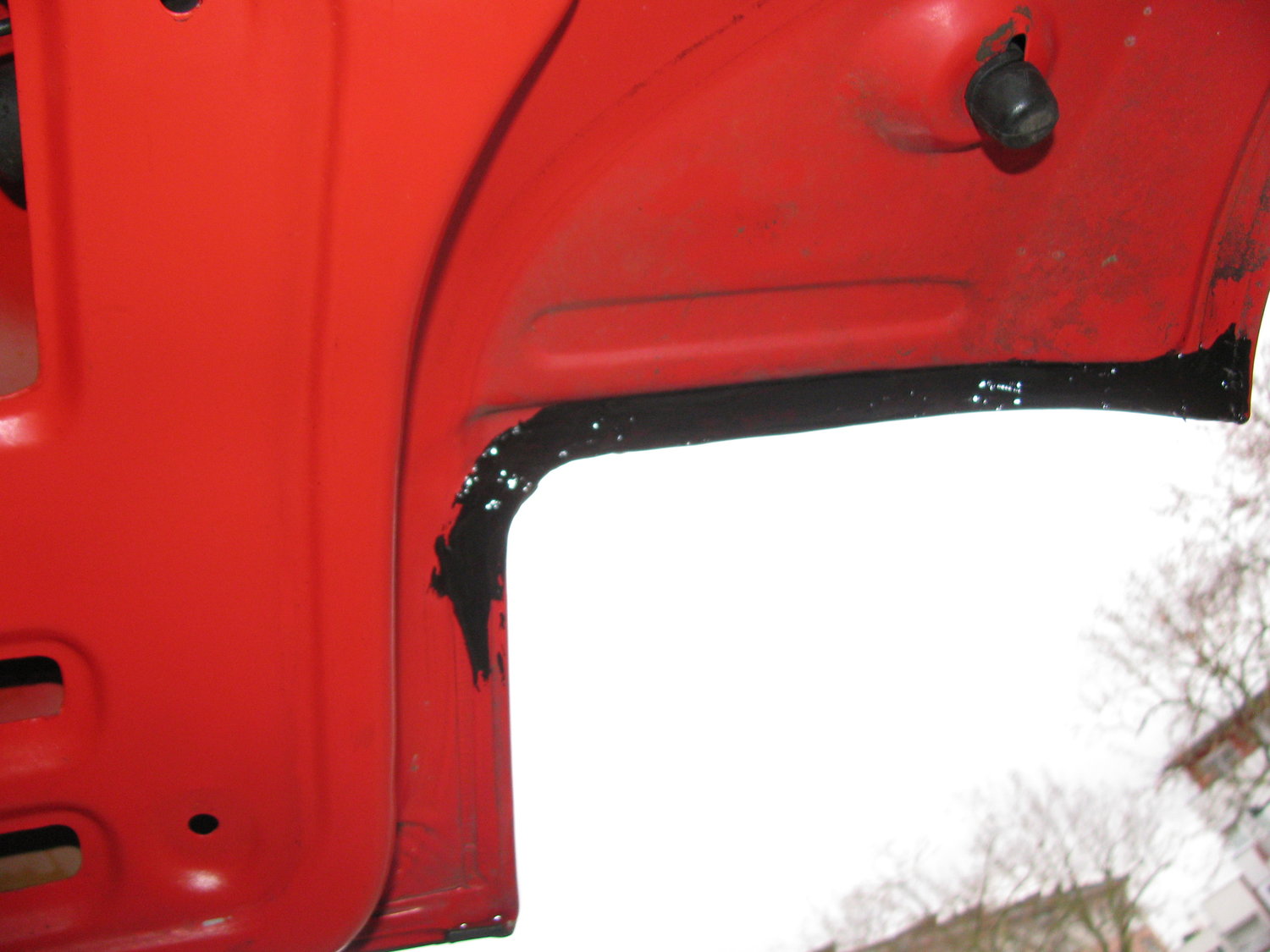 Mir ist aufgefallen dass die Dichtungsmasse zwischen innen- und aussenblech der Heckklappe über den Rücklichtern eingerissen ist. Beim überschütten mit Wasser hab ich dann entdeckt dass das Wasser genau über den Riss läuft - aha...