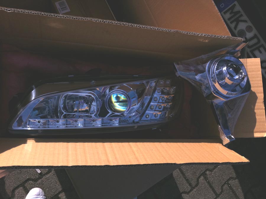 stehe sonst nicht auf zubehör scheinwerfer aber die tfl optik dinger sind recht schick die tfl unterstreichen den originalen bösen blick des fahrzeugs. bin auch auf das endergebniss gespannt, ich hoffe der motor läuft bald :-(((