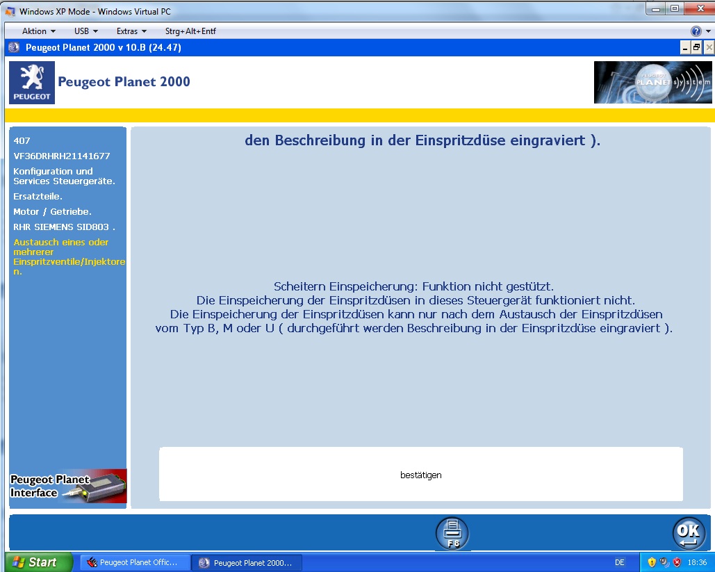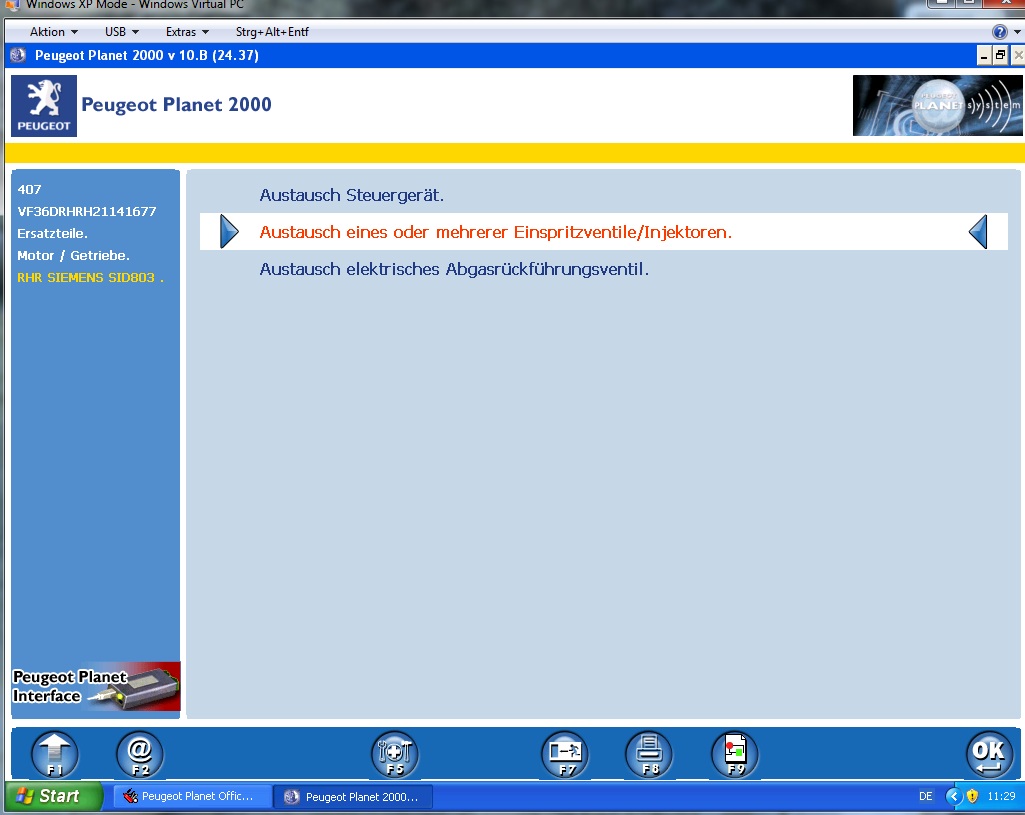 Ich glaube , Motor-Einspritzeinheit, Austausch eines oder mehere Einspritzdüsen, dann Enter Enter ,nur ich komme nicht da hin wo man die Nr. eingibt.