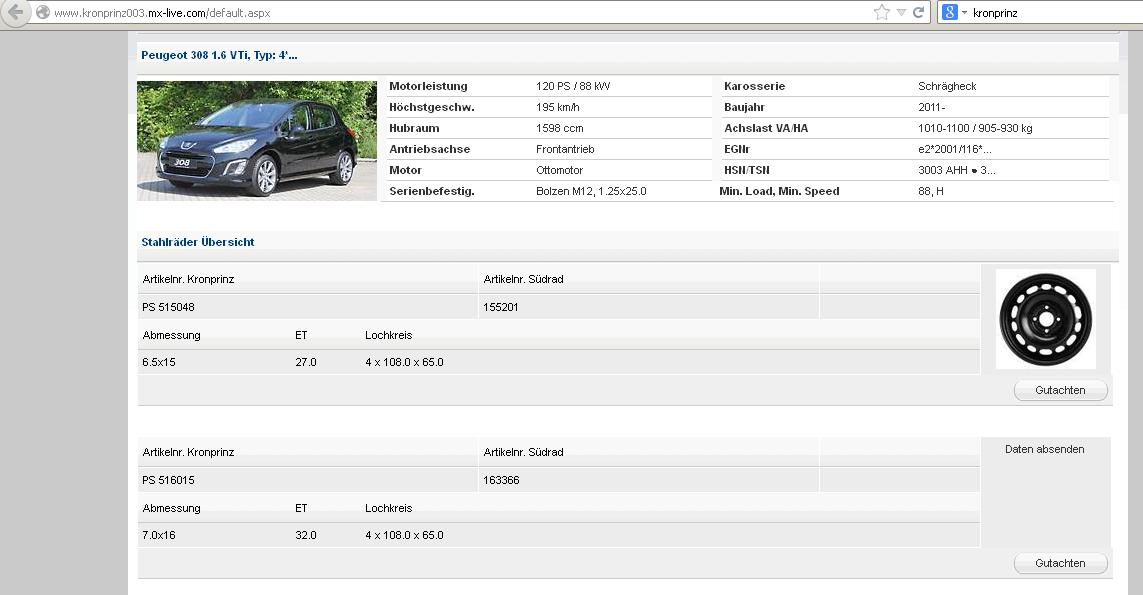 7Jx16 ET32 4x108 original Peugeot, Artikelnummer 5401.R7