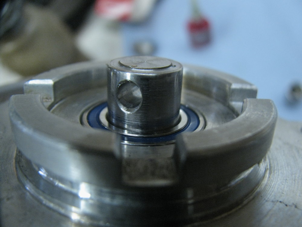 Jetzt spiele ich mit dem Gedanken mit die Welle auf 12mm runterzudrehen und die in das gehäuse eingepresste buchse durch ein gekapseltes Kugellager zu ersetzen.