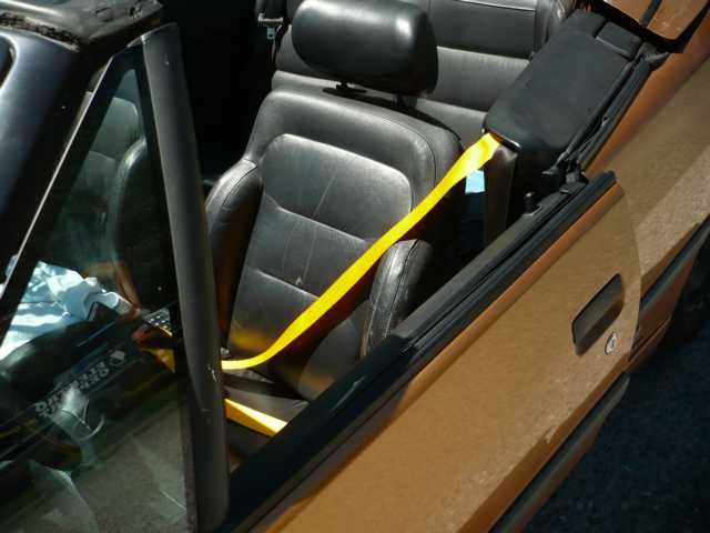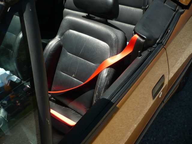 Das Auto selber ist Goldmetallic. Dachte zuerst an braune Gurte, dann fand ich das Beige gut passend, weil es einen leichten Stich ins Gold hat.