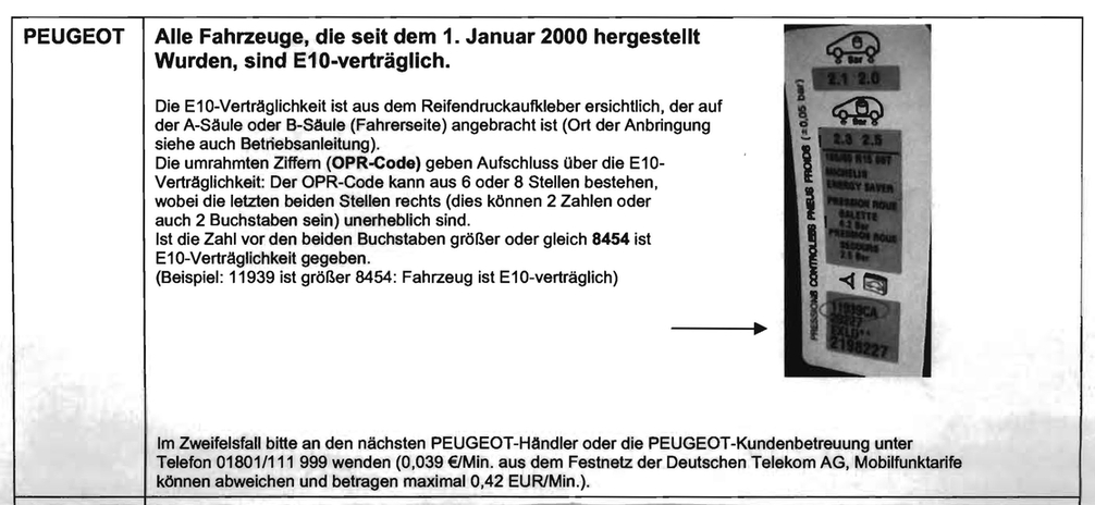 Quelle: http://www.bmu.de/e10/doc/46718.php sowie http://www.dat.de/e10liste/e10vertraeglichkeit.pdf