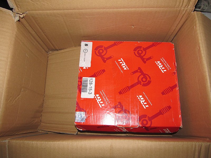 Und um das Chaos komplett zu machen: Als ich die Bremsbelagsätze bekomme, scheppert es verdächtig im Karton. Karton aufgemacht - der Karton mit den Belagsätzen liegt ohne jegliches Füllmaterial im Versandkarton, der viel zu gross ist. So kann natürlich die kleine Kartonage mit den Belägen lustig im Karton tanzen. Das Ergebnis: