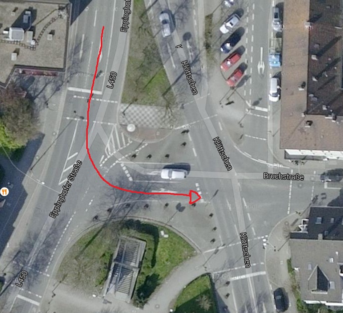 Mir kamen aber 4 fahrzeuge entgegen die ich als linksabbieger ja durchlassen muss.nach diesen 4 fahrzeugen eine lücke die für mein sw reicht.schon gestresst vom dauerhupen fahr ich also los und drück mich durch die lücke.