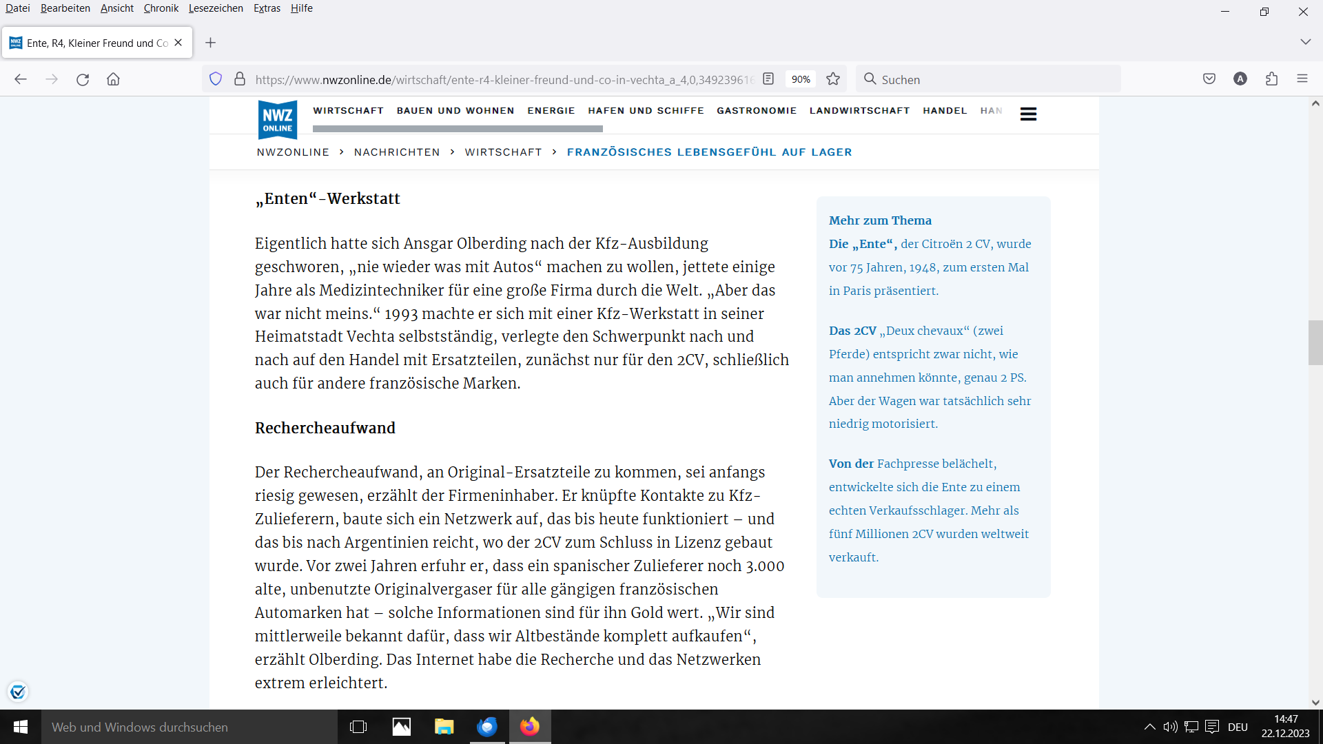 Re: Französisches Lebensgefühl auf Lager Zeitungsartikel