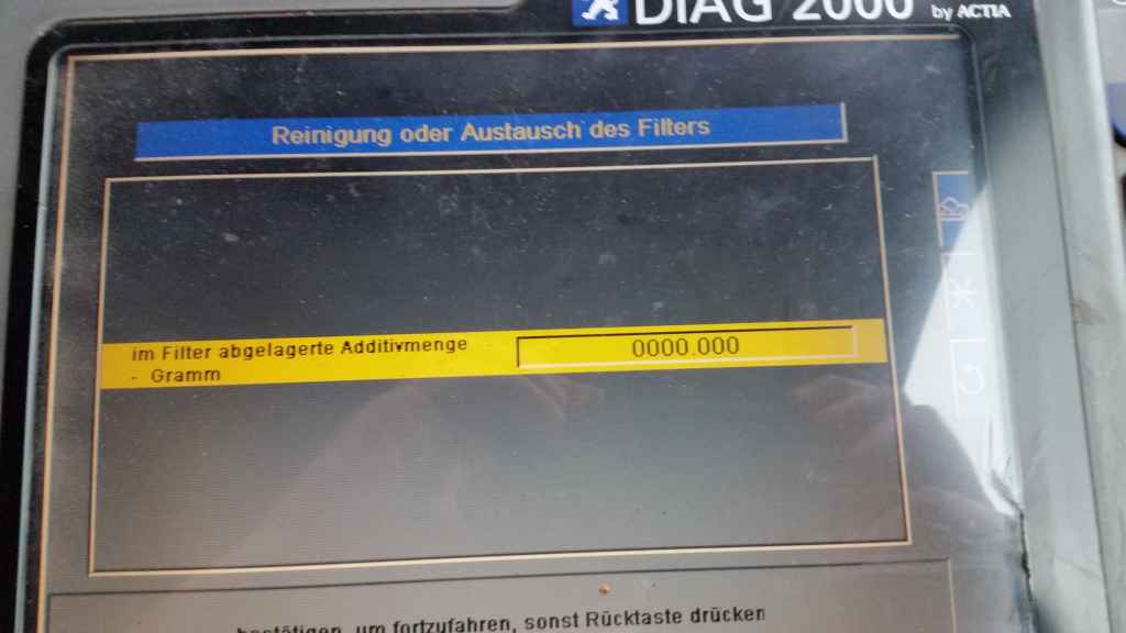 Ich habe evtl. noch eine andere Vermutung: Wenn ich im DIAG den Punkt "Nullrückstellung des Parameters Additiv - Gesamtmenge" wähle, muss ich irgendwann die "im Filter abgelagerte Additivmenge - Gramm" angeben. Was soll das an dieser Stelle, das habe ich bei Austausch des Additivsteuergeräts auf "0" gesetzt, vorher war die angezeigte Menge 93,15g?! Kann es sein, dass dies eine grottenschlechte Übersetzung ist und ich hier die eingefüllte Menge an Additiv eingeben muss? Immerhin muss ich beim Funktionstest des Tankdeckelsensors auch den Deckel Bremsflüssigkeitsbrhälters auf und zu machen...