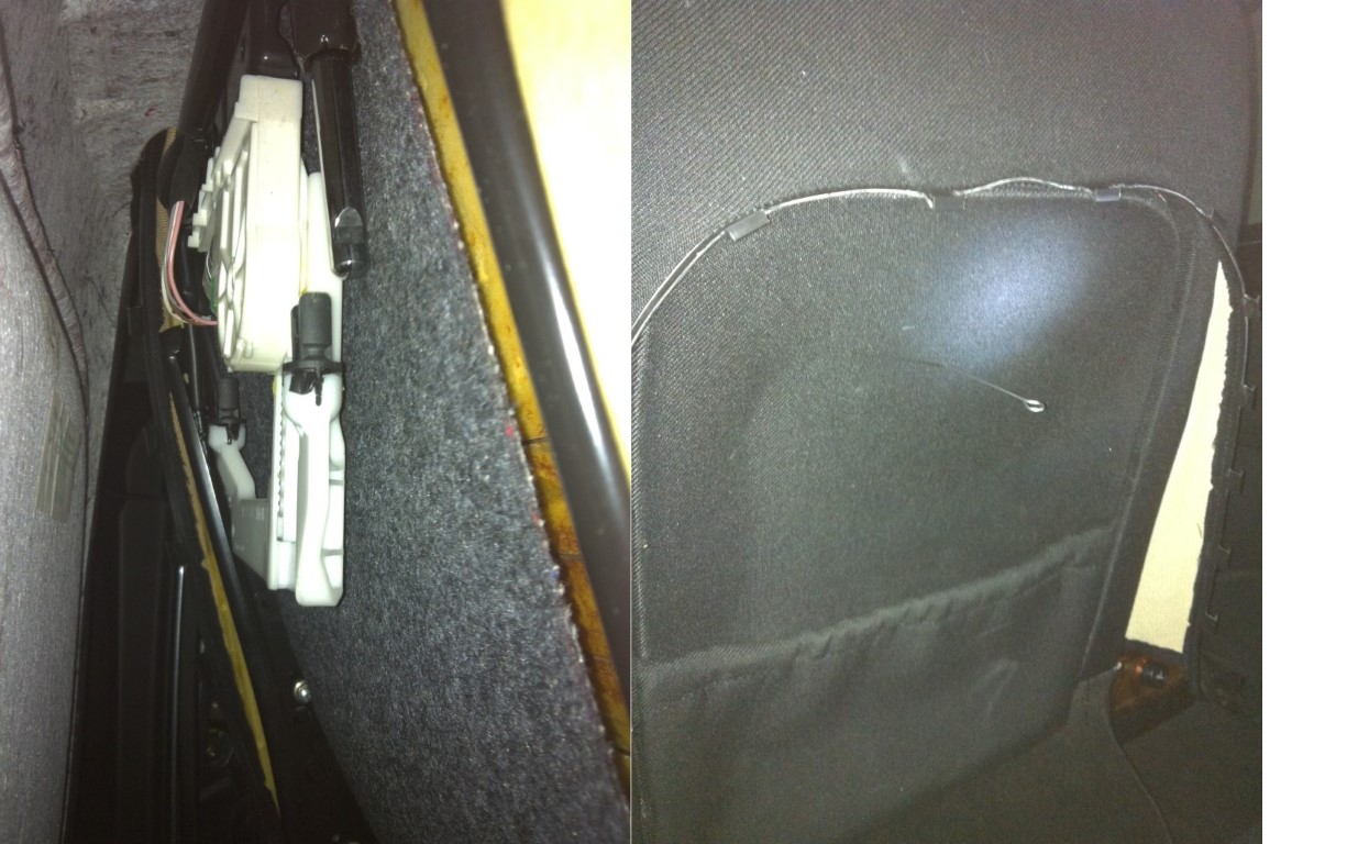 Wenn du nur die Kopfstützen bearbeiten willst und die Kabel außerhalb geführt werden (also quick and dirty), musst du nur die Kopfstütze herausnehmen. Dazu die Stütze elektrisch ganz nach oben fahren und dann vorsichtig herausziehen. Vorher musst du den Sitz nach hinten neigen, weil der 607 nicht hoch genug ist (sonst wäre es ja ein 6007 :-) ). Bei wiedereinsetzen der Stütze das Spiel in den Plastikführungen des Sitzes ausnutzen um die Stütze nach hinten "zu stechen". sonst trifft man nämlich nicht die motorische Aufnahme im Sitz. Deswegen muß man auch die Kopfstütze erst nach oben fahren, denn sonst verfehlt man die Aufnhame auf jeden Fall (dann hilft nur der Stricknadeltrick oder Aufmachen)