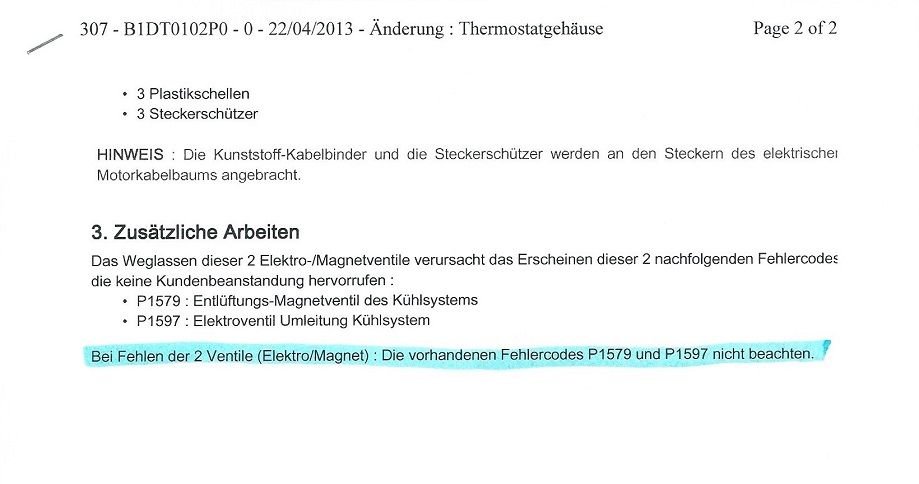 Wie ich schon früher geschrieben habe, muss man das Thermostatgehäuse austauschen. Umbauanleitung habe ich im Peugeot-Service bekommen. Hier soll ich sagen, dass nicht jedes Peugeot-Service diese Information mir geben wollte. Aber nach dem Besuch der mehreren Services habe ich letztendlich Umbauanleitung von KFZ-Master bekommen.