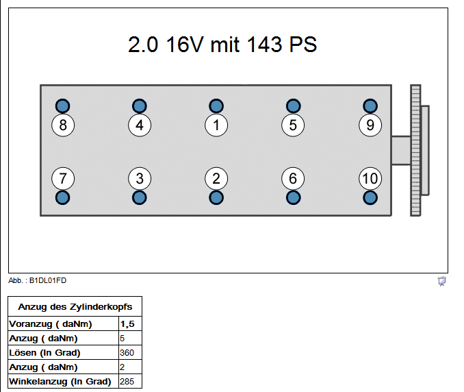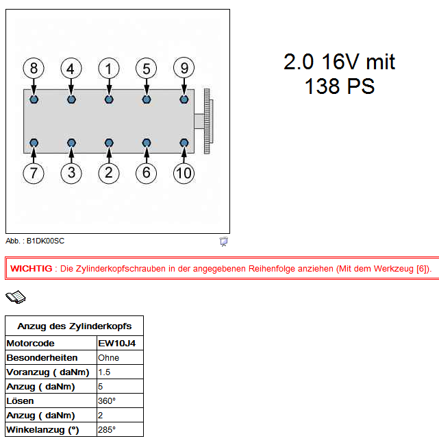 Ich bin auf der Suche nach den Anzugsdrehmomenten für die Zylinderkopschrauben eines 307 mit dem 2.0 16V.