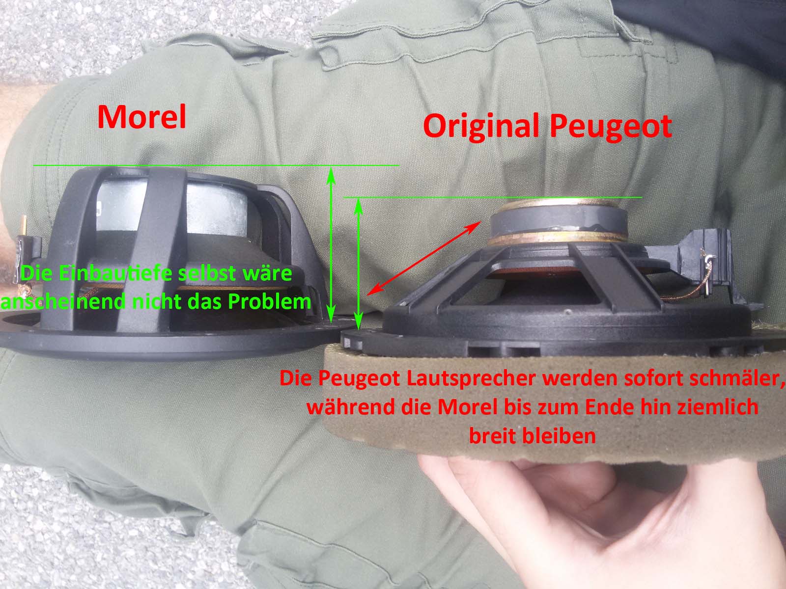 Ich will bei meinem Peugeot 206 SW die vorderen Lautsprecher tauschen, allerdings musste ich schnell feststellen, dass scheinbar ein geistig verwirrter Ingenieur von Peugeot bei der Planung der Lautsprecherhalterungen beteiligt war, denn warum zum Teufel befindet sich auf der rechten Seite so eine blöde Kante? Was zum Teufel hat sich der dabei gedacht? Wenn die das Teil nur um 2cm versetzt hätten, dann wäre genug Platz für alle möglichen Lautsprecher!