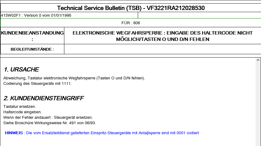 Leitungen hinter der Wegfahrsperren-Tastatur sind in Ordnung und nicht gebrochen ???