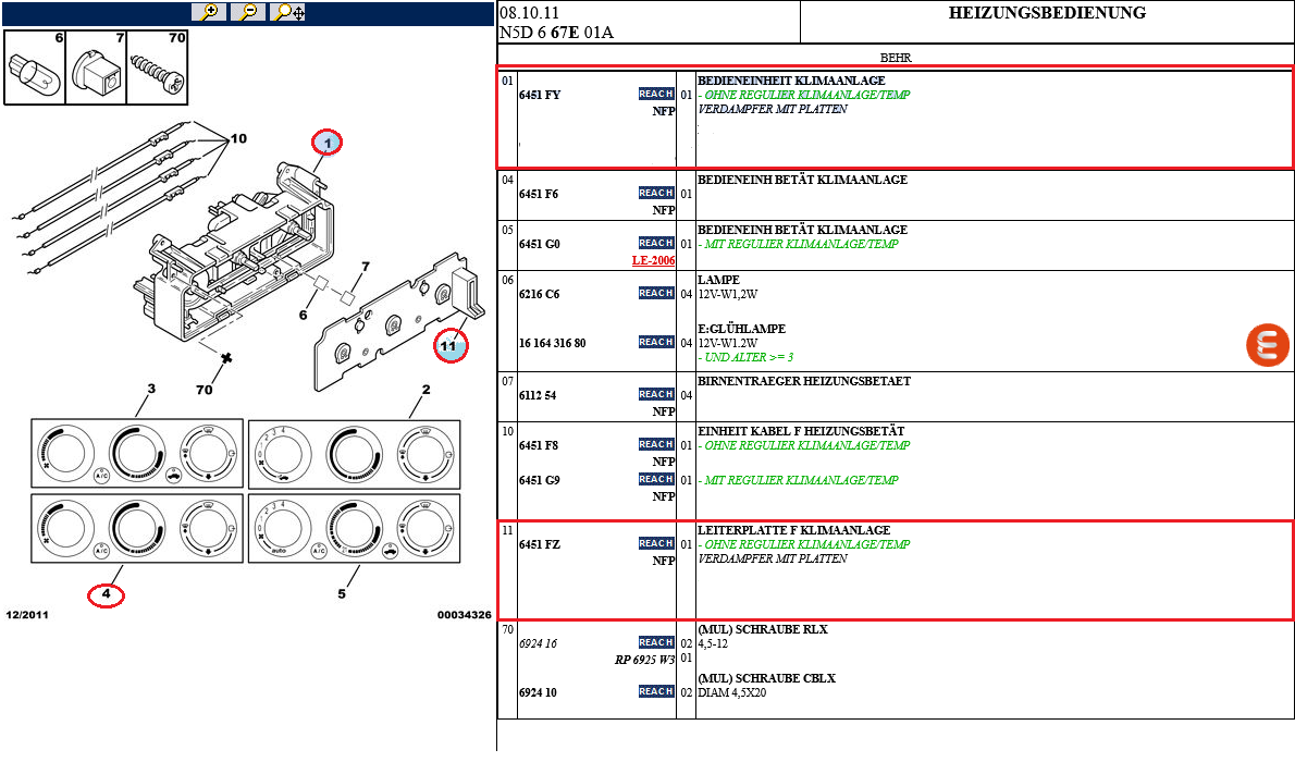 Die Frage ist nur, hat mein 306er VF37DLF YF 332 545 52 mit Klima dieses und wenn, wo finde ich es.