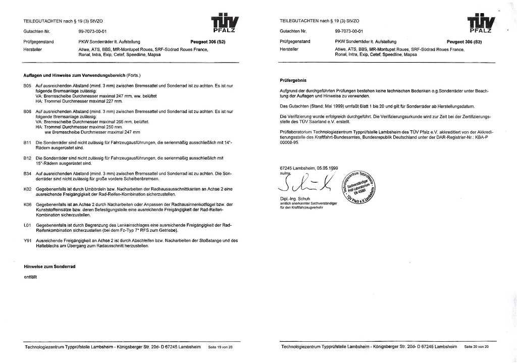 Re: Peugeot 306 Cabrio 2,0 Bj. 1998 Ouragan 16" Eintragung