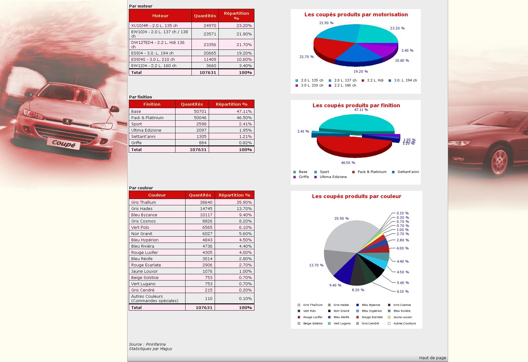 darf ich Dich einmal um die Quelle der Verkaufszahlen des 406er coupes fragen ? Kann ich das irgendwo nachlesen, welches coupe mit welcher Motorisierung und welcher Lackierung wie oft produziert wurde ? Ganz ohne tieferen Sinn diese Frage, einfach nur aus reiner Neugierde.