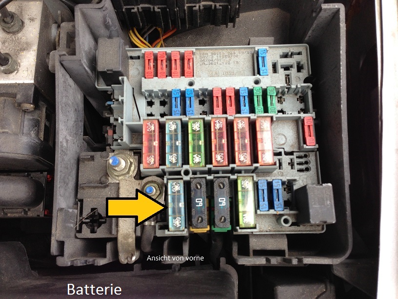 einmal der sicherungskasten im motorraum von vorne aus gehen..der gelbe pfeil zeigt auf die BSI sicherung ! kann man die normal wecheln ?