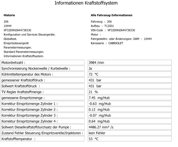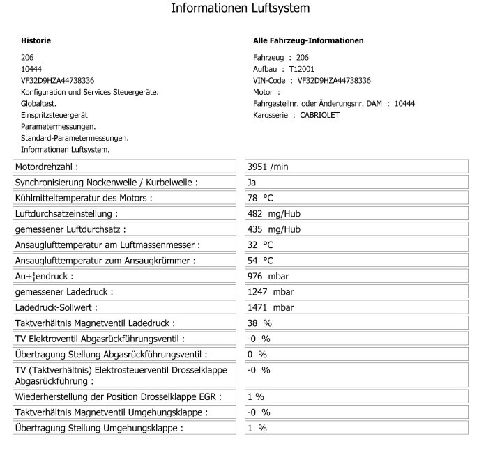 Also die Werte gefallen mir überhaupt nicht! Eigenartig finde ich den Ladedruck der sollte viel höher liegen! Im Leerlauf sollte die EGR auf ca. 100% stehen. Den Einspritzdruck finde ich auch zu niedrig! Bei unserm liegt er bereits ab 2000rpm jenseits der 1000 Bar ! Dann die Additivmenge im Partikelfilter ist eigenartig etc. etc. Ajaund danke für die Hilfe auf der suche nach dem Planet 2000 :daumenhoch: