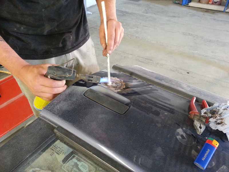 hier noch ein paar pics. Damit nicht in ein paar monaten der Spachtel hochkommt werden Dinge wie das Cleanen der Türschlösser und Blinker nach dem verschweissen noch zusätzlich verzinnt.