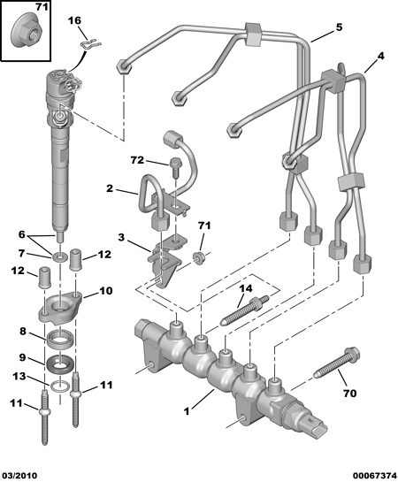 Das Öl wird vermutlich am Injektor vorbei gedrückt.Der Injektor selbst sitzt noch in einer Hülse die eigentlich fest mit dem Zylinderkopf verpresst ist.Diese kann sich jedoch in einigen fällen anheben und somit den injektor ein Stück hochdrücken.Durch diesen Spalt wird dann das Öl am Injekror vorbei bis nach oben gedrückt.