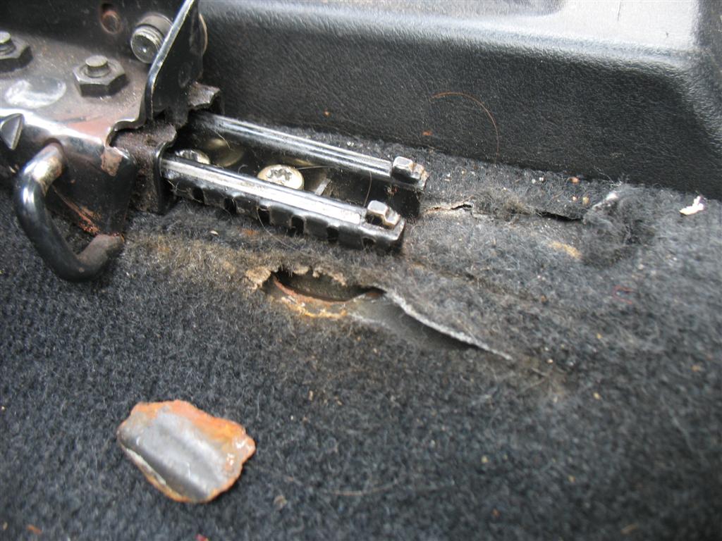 das hat mehrere gründe, einer davon ist, dass an der stelle nur einlagiges material ist und dort aber recht heftige biegemomente duch die sitzbelastung auftreten. je schwerer der fahrer, desto schnelller kommt das. da würde ich empfehlen, auch gliech den bereich der vorderen schraubstellen in augenschein zu nehmen und prophylaktisch zu verstärken. ist ein aufwasch, denn der teppich muss ja eh raus:-)