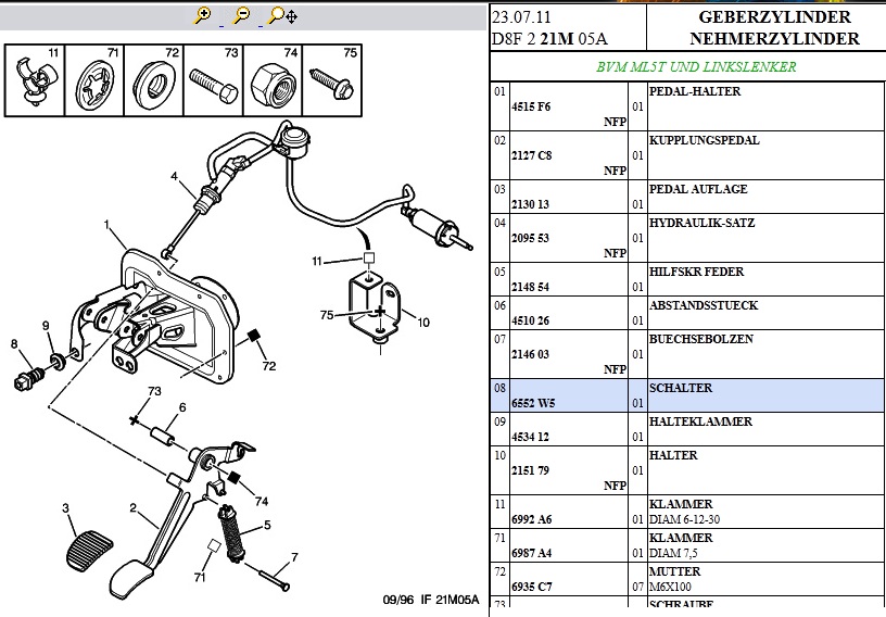 ich habe heute gemerkt das mein Kupplungspedal knarzt. Aber beim nachsehen ist mir aufgefallen das ein Schalter beim Kupplungspedal defekt ist. Der auf dem Bild zu sehende Schalter mit der Nummer 8.