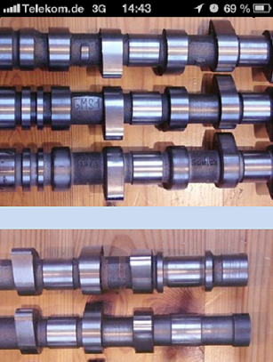 Hallo ich habe mir einen gebrauchten Kopf mit welle ( 120 ps dkz) gekauft, als ich die Nockenwelle ausgebaut habe, sah ich die zwei braunen Markierungen die normal nur auf der 128 ps welle sind laut Forum ? Hab mal Bilder gemacht siehe anhang
