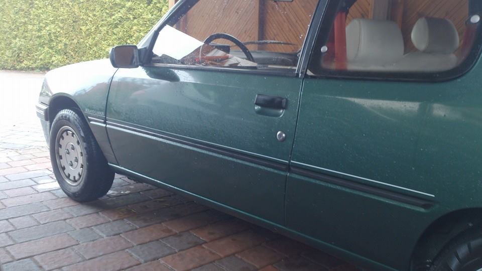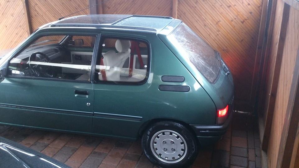 graue statt grüne stoßstange hinten. und wie die steht, hat der wohl mal einen drauf bekommen.