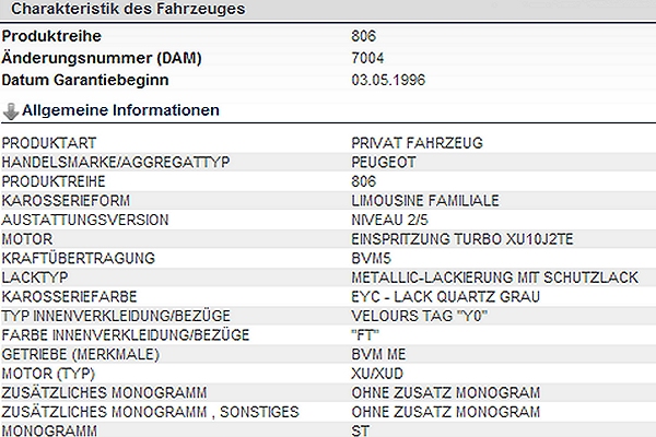 nur, dass die da nicht stimmt, die hab ich ein paar mal gefunden, das ist wahrscheinlich ein ähnlicher pflegefehler wie der garantiebeginn am 01.01.1990, der bei allen älteren autos drinsteht.