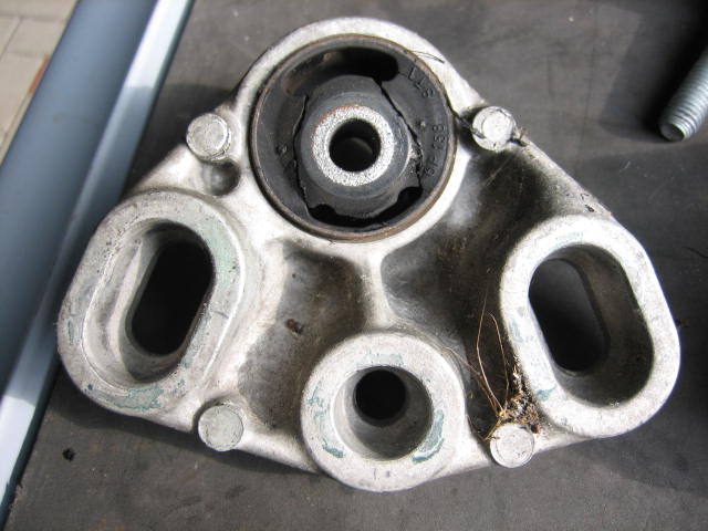 Normal ist dann das Hydrolager noch in der Karosserie, was hier aber nicht mehr der Fall war, da war nur noch die Schraube drin.