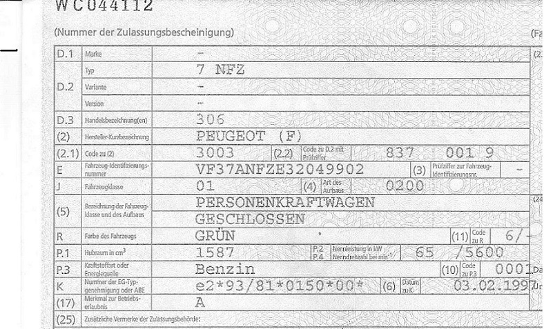 Fahrzeug Papiere  Daten Peugeot 306 001.jpg