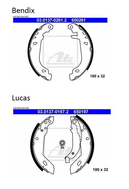 Meine Bremsbacken sind von ATE und wenn ich die verbaute Teilenummer eingebe, dann wird mir angezeigt, das die Bremsbacken aus dem Bendix Bremssystem sind.