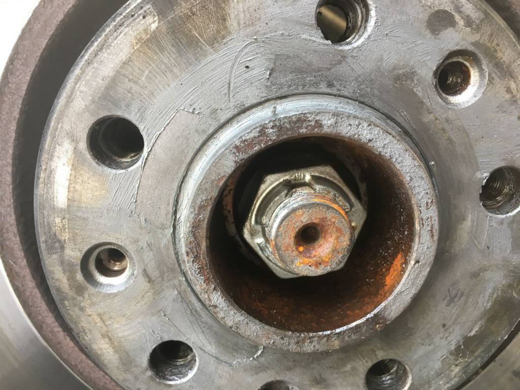 Nein diese dicke schraube hält nur die Antriebswelle. Diese 2 kleinen Schrauben halten die Scheibe, bez klemmt diese ja. Jetzt gibt's genau einen Trick um die los zu bekommen, und zwar nimmst dir den dicksten Metall Hammer und haust da volles meet mehrfach drauf bis sie kommt. Nach der Prozedur ist sie natürlich vorzugsweise nicht mehr zu verwenden :D