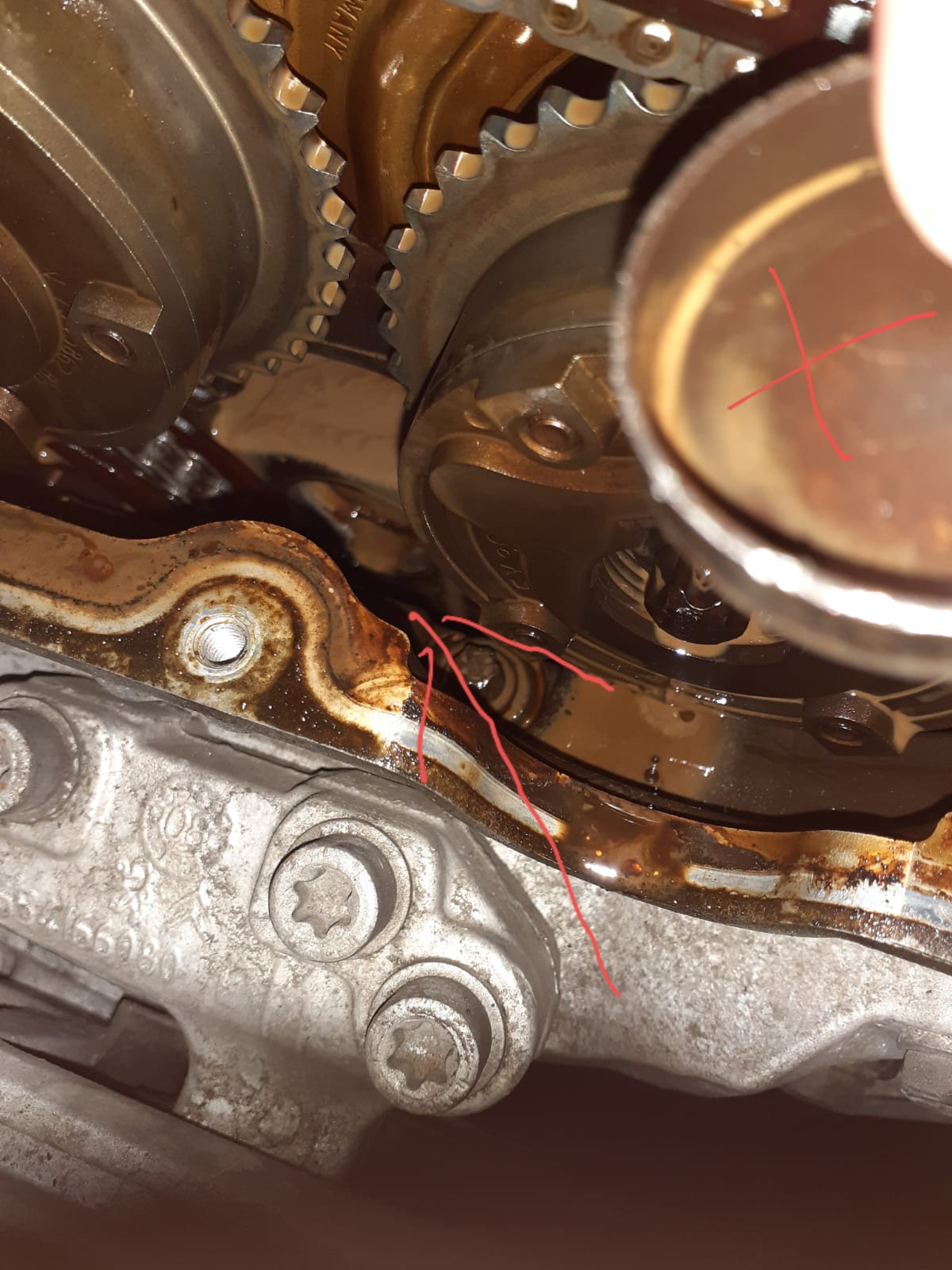 Ventildeckel abgebaut und im Kettenkastengehäuse lag ein Froststopfen der sich aus dem Zylinderkopf gelöst hat.