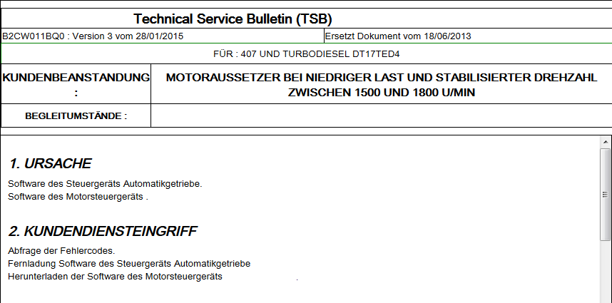 Selbst mein Kfz Meister (Freie Werkstatt) weißnicht so recht wo er mit der suche beginnen soll.