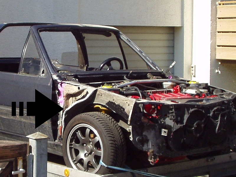 Dieses Blechteil ist hauptsächlich mitverantwortlich dafür, dass die meisten Kotis beim Abbau böse Knicke bekommen, denn das ist am Aussenrand von oben bis unten mit Dichtmasse mit dem Koti verklebt und geht bis oben in die Kotflügelrundung rein.:-)