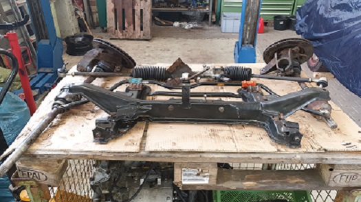 Die Hinterachse ist draußen und zerlegt.